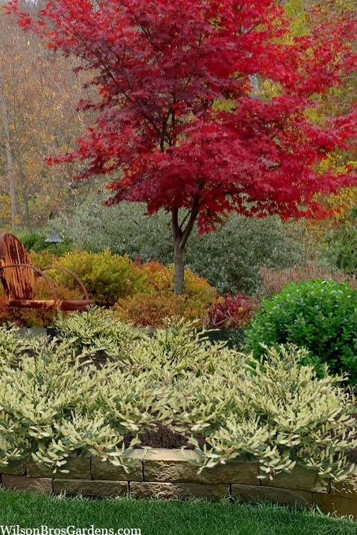 Befitting its name, ‘Spring Frost’ is a lower growing Distylium that sports outstanding cream-white new growth that lights up the landscape. Petite red flowers emerge along the branches in late winter before new leaves emerge. We love this one around red or purple leaved Japanese maples and Loropetalums and other dark leaved shrubs. No other evergreen plant we’ve seen looks like Spring Frost Distyilium so it’s sure to be a standout in your landscape!
